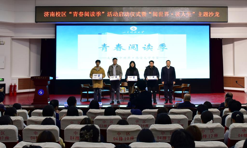 校区党委委员兼学团工作部主任、学生党总支书记毛庆东宣布了《山东科技大学济南校区“青春阅读季”活动方案》。校区党委委员兼教务部主任刘国栋向2025年新进青年教师赠送《科大故事》系列图书。
