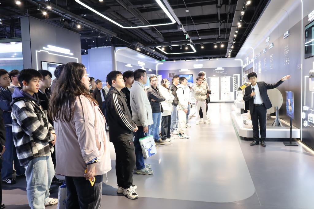 在海尔智慧楼宇市场推广总监谷广普、经理崔仕华、吴雁飞等陪同下,师生参观了海尔智慧楼宇产业展厅,了解企业发展历程与文化理念,观摩了VPC变频技术、高效暖通系统及智慧建筑能源解决方案等前沿产品与空调系统。通过现场体验,同学们对专业理论在工程实践中的应用有了更直观的认识。