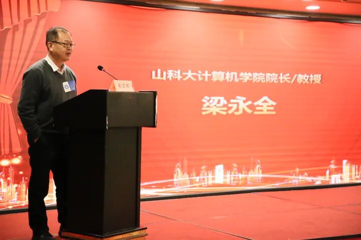 计算机学院院长梁永全致辞,介绍了学院最新发展动态和近年来取得的成绩,并期待与广大校友在人才培养、科研合作等方面深化合作,同时欢迎校友们常回家看看。