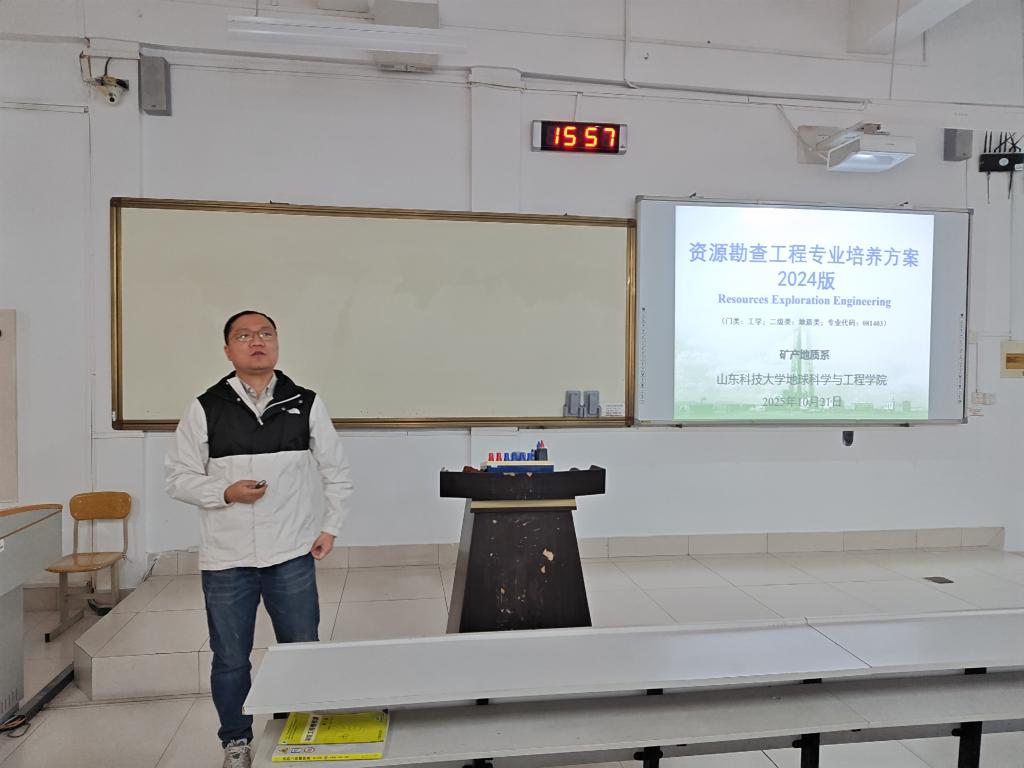 许庆林系统梳理了资源勘查工程专业的历史沿革、师资力量、教学条件与就业方向,帮助新生构建起对专业的整体认知。张晓阳对2024版培养方案进行了解读,重点介绍了课程体系、实践教学环节与能力要求,为同学们后续学习规划提供了清晰指引。