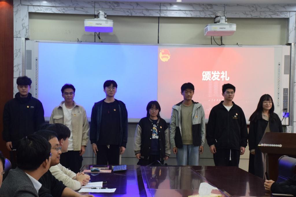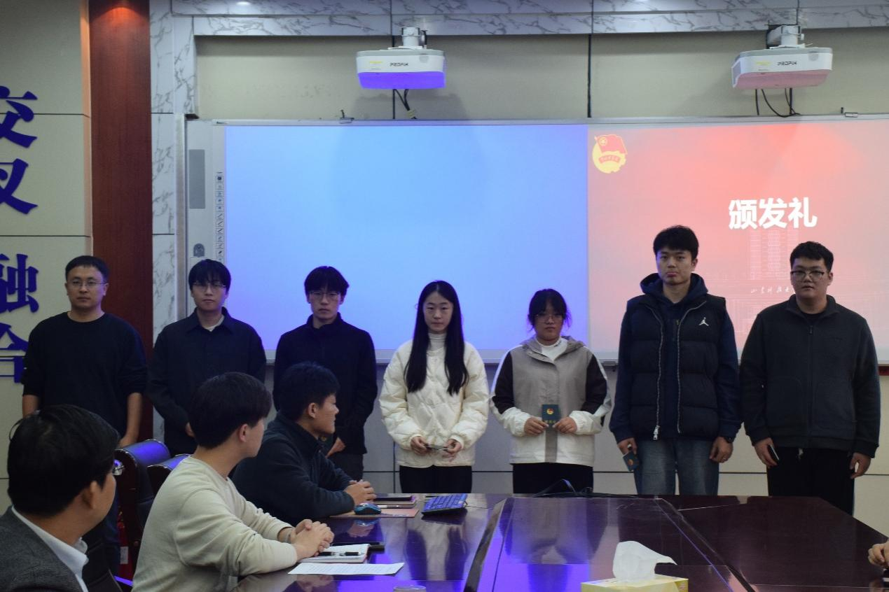10月31日下午,材料学院于J2-434教室隆重举行以“材心向团,逐梦笃行”为主题的2025年下半年新发展团员入团仪式。材料学院党委副书记兼副院长李建楠,团委书记马韶霞,辅导员钟文建、石臻、许珍颖、韩恒飞、张步初,优秀团员代表及全体2025年下半年新发展团员共同参与仪式,本次仪式由张步初主持。