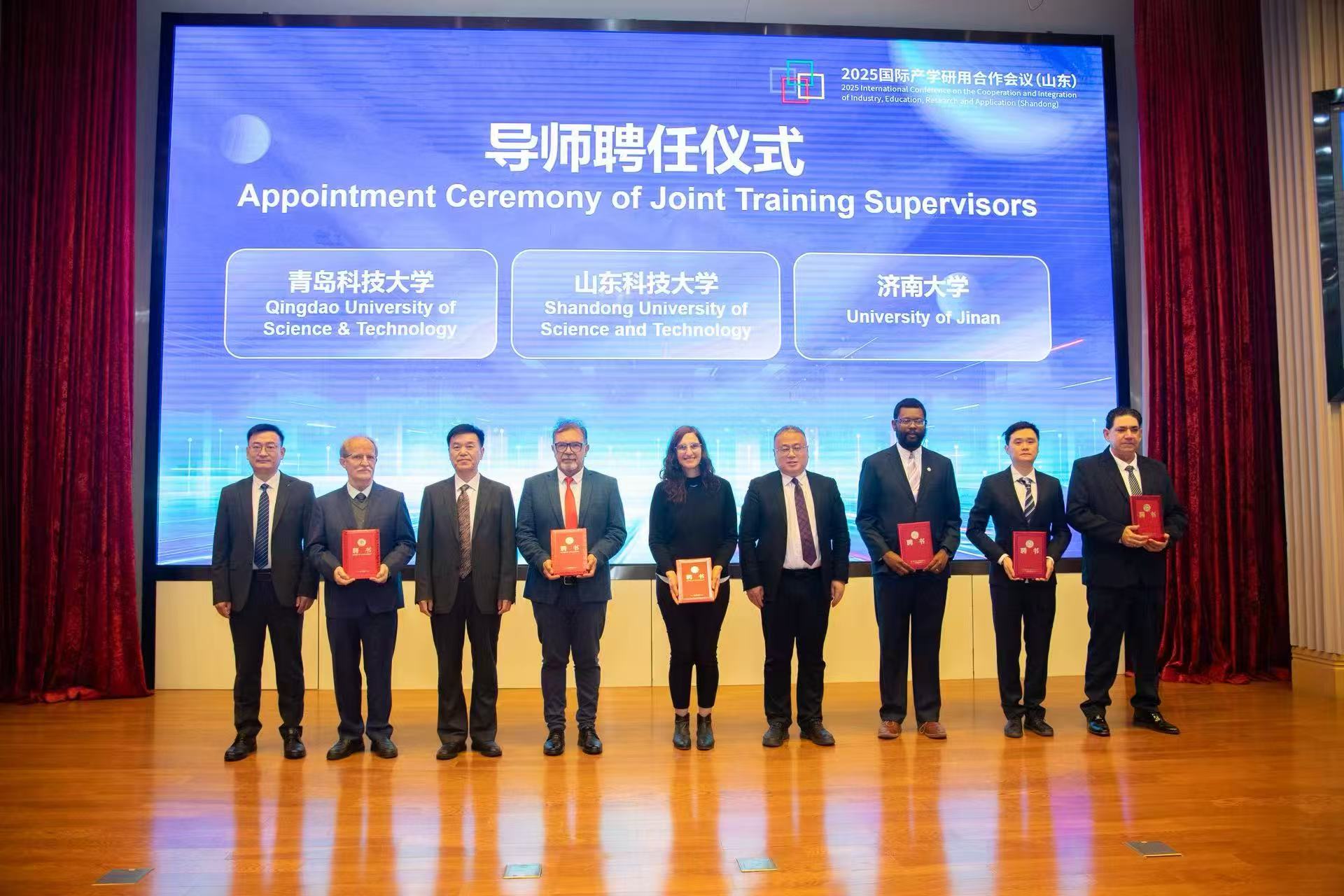 11月15日,2025国际产学研用合作会议(山东)开幕式在山东大学举办。我校外籍导师Carlos Zavala和Daniela Olivera受邀参加开幕式,研究生院负责人韩作振教授为其颁发国际产学研用合作会议框架下外方导师聘书。