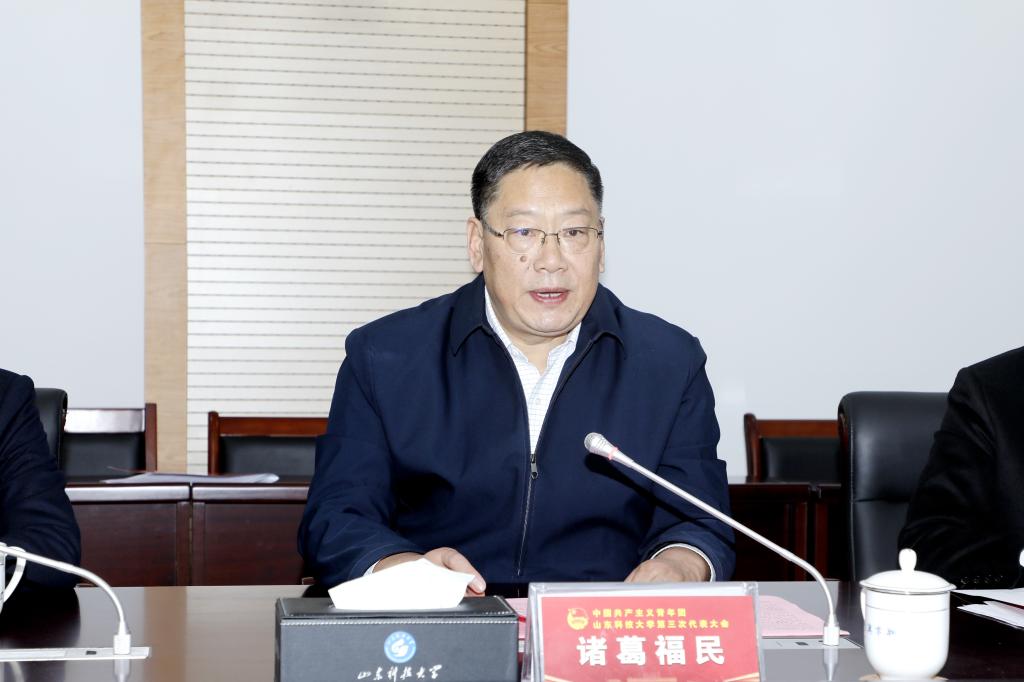 大会闭幕后,共青团山东科技大学第三届委员会第一次全体会议召开,选举产生了新一届委员会常务委员、书记和副书记。诸葛福民代表学校党委对新一届委员会提出四点希望:一是坚持政治建团,筑牢思想根基,牢牢把握共青团事业发展根本方向;二是坚持固本兴团,勇担先锋使命,奋力谱写服务学校发展大局的青春篇章;三是坚持改革强团,激发内生动力,着力锻造紧跟时代步伐的先进组织;四是坚持从严治团,永葆先锋本色,奋力担当党的忠实助手和可靠后备军。