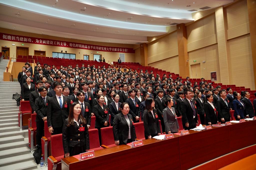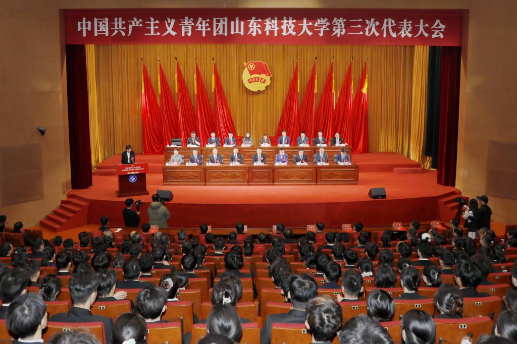 校团委书记高一丹代表共青团山东科技大学第二届委员会作了题为《凝心聚力跟党走挺膺担当建新功为全面建设工科主导、特色鲜明的高水平应用研究型大学贡献青春力量》的工作报告。报告全面客观地总结了学校第二次团代会以来的共青团工作,深刻分析共青团工作面临形势与挑战,提出未来五年将以实施“青・志”青春铸魂工程、“青・锋”青春挺膺工程、“青・耘”青春托举工程、“青・筑”青春强基工程为总抓手,细化落实十二项青春行动,团结带领广大团员青年在全面建设工科主导、特色鲜明的高水平应用研究型大学的生动实践中,在强国建设、民族复兴的伟大征程中,书写无愧于时代、无愧于历史、无愧于人民的青春华章。
