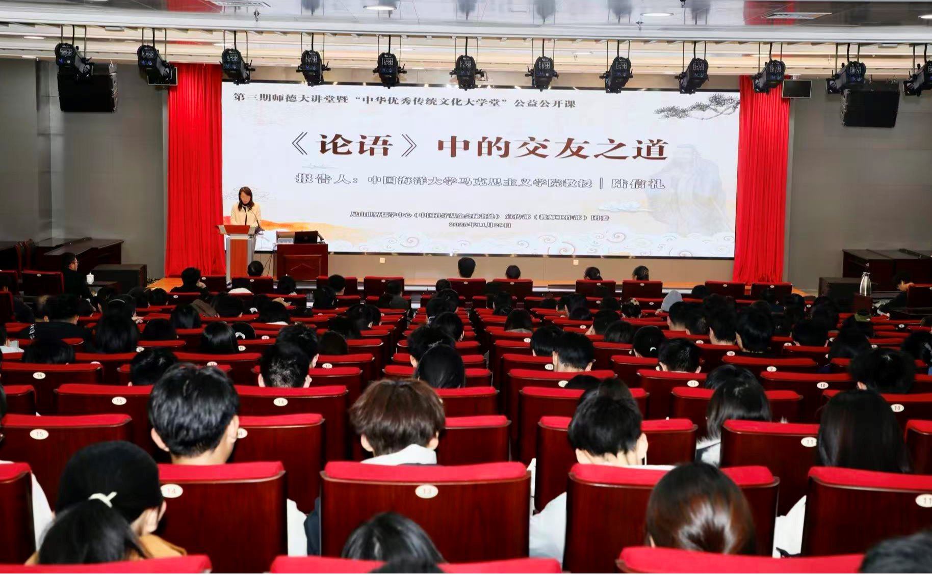 11月28日,学校举办第三期师德大讲堂暨“中华优秀传统文化大学堂”公益公开课活动,特邀中国海洋大学马克思主义学院教授、中国实学研究会理事、山东曾子研究会会长、中国传统哲学与文化研究专家陆信礼作题为“《论语》中的交友之道”专题报告。