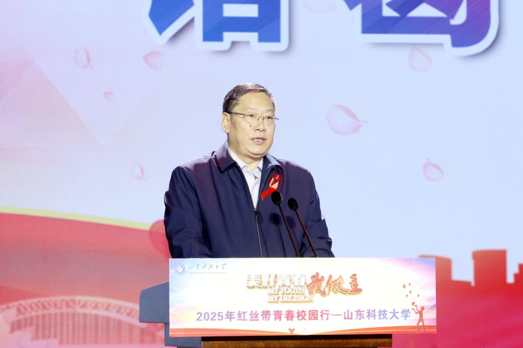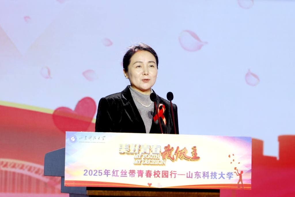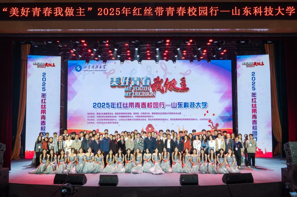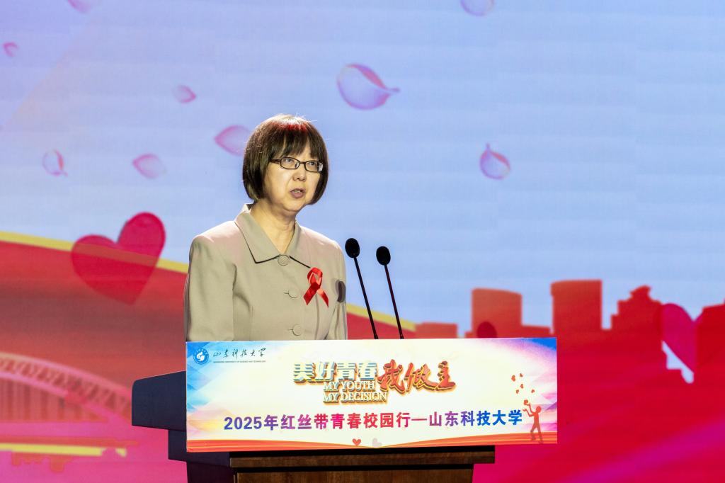 为普及艾滋病防控知识,促进高校预防艾滋病工作深入开展,12月9日下午,“美好青春我做主”2025年红丝带青春校园行活动在山东科技大学举行。副校长诸葛福民、中国健康教育中心纪委书记赵虹、山东省疾病预防控制局传防处四级调研员寇琰参加活动并致辞。国家卫健委预防艾滋病宣传员、歌唱家蔡国庆和国家干预、治疗专家、岛城十余所高校师生代表参加活动。