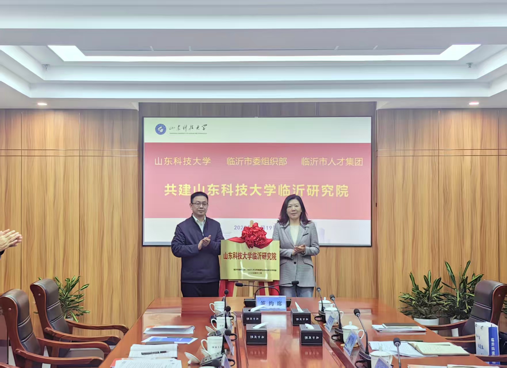 12月19日,山东科技大学与临沂市委组织部、临沂人才工作集团合作共建“山东科技大学临沂研究院”签约仪式在我校举行。校党委常委、副校长陈绍杰,临沂市委常委、宣传部部长张晓彬共同为研究院揭牌。