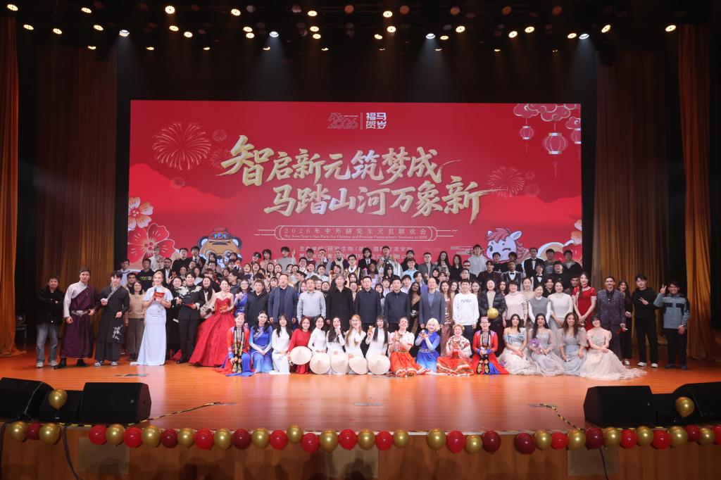 12月31日下午,由研究生院与国际交流学院联合主办的山东科技大学2026年中外研究生元旦联欢会在惟真讲堂举行。副校长薛庆忠、朱敬义,研究生院、国际交流学院、国际交流处、各研究生培养单位相关负责人与近千名中外研究生代表欢聚一堂,共同迎接新年到来。