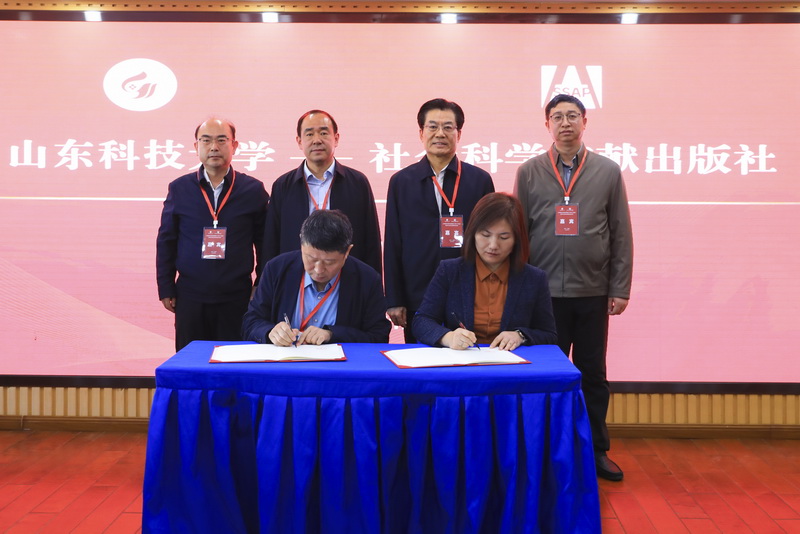 随后,举行了山东科技大学与社会科学文献出版社的战略合作协议签约仪式。学校合作发展处处长王晓东与出版社副社长梁艳玲代表双方签署协议,标志着双方将在智库建设、学术推广与成果转化方面开展长期深度合作。