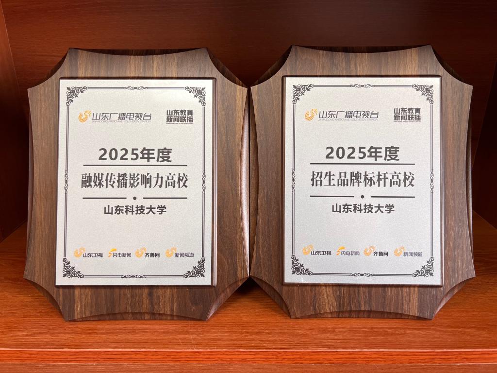 近日,山东广播电视台根据2025年度媒体融合传播数据,公布年度评选结果,山东科技大学荣膺“2025年度融媒传播影响力高校”与“2025年度招生品牌标杆高校”两项称号。