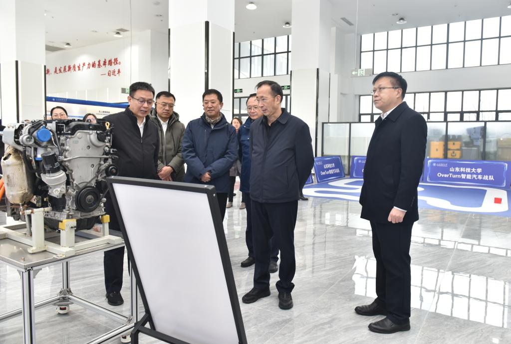 李德金一行实地参观了学校露天煤矿灾害防治与生态保护全国重点实验室及青岛智能无人系统创新研究院,深入了解学校最新科研进展及绿色开采、灾害防控、具身智能等领域的科技创新成果创新成果,对学校发挥专业特色和优势、服务国家战略需求和经济社会高质量发展方面的做法和成效给予充分肯定。