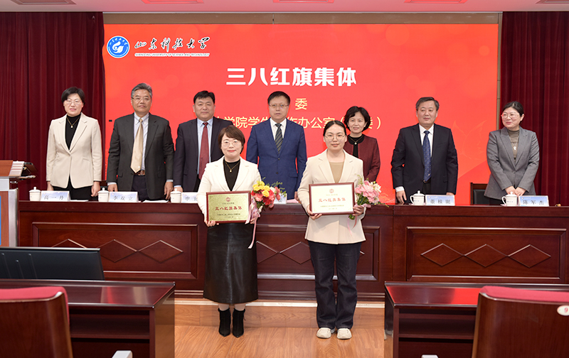 会上,妇委会主任陈军杰宣读《关于表彰山东科技大学三八红旗集体、巾帼建功十大标兵、三八红旗手、文明幸福家庭的决定》。伴随着热烈的掌声和欢快的乐曲,大会举行颁奖仪式。与会领导为获奖集体和个人代表依次颁发奖牌、证书并献上节日花束。