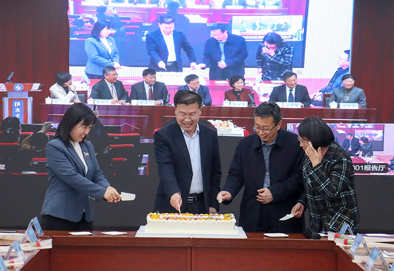与会领导共同切下节日蛋糕(泰安校区分会场)刘钦兴摄