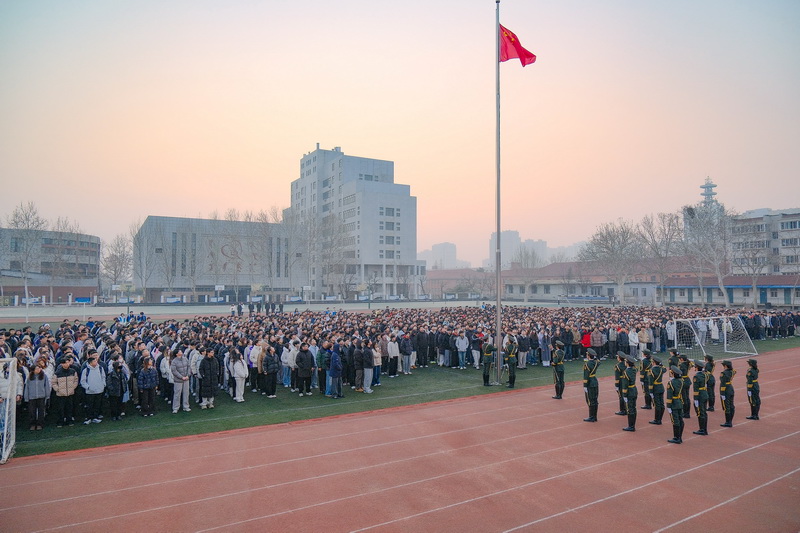 晨曦微露,学校举行新学期升旗仪式,五星红旗在雄壮的国歌声中冉冉升起,师生们肃立注目,以庄严的仪式感开启新学期的征程。