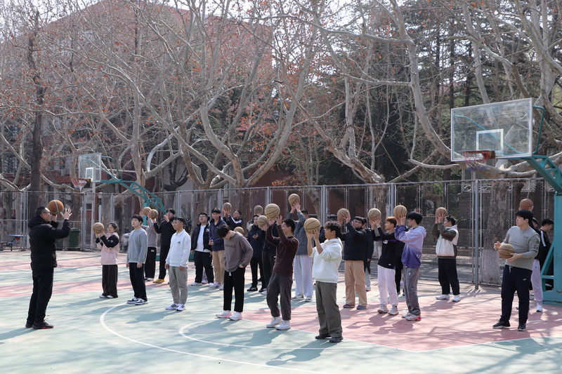 同学们在体育课上练习打篮球(摄影:罗昊)