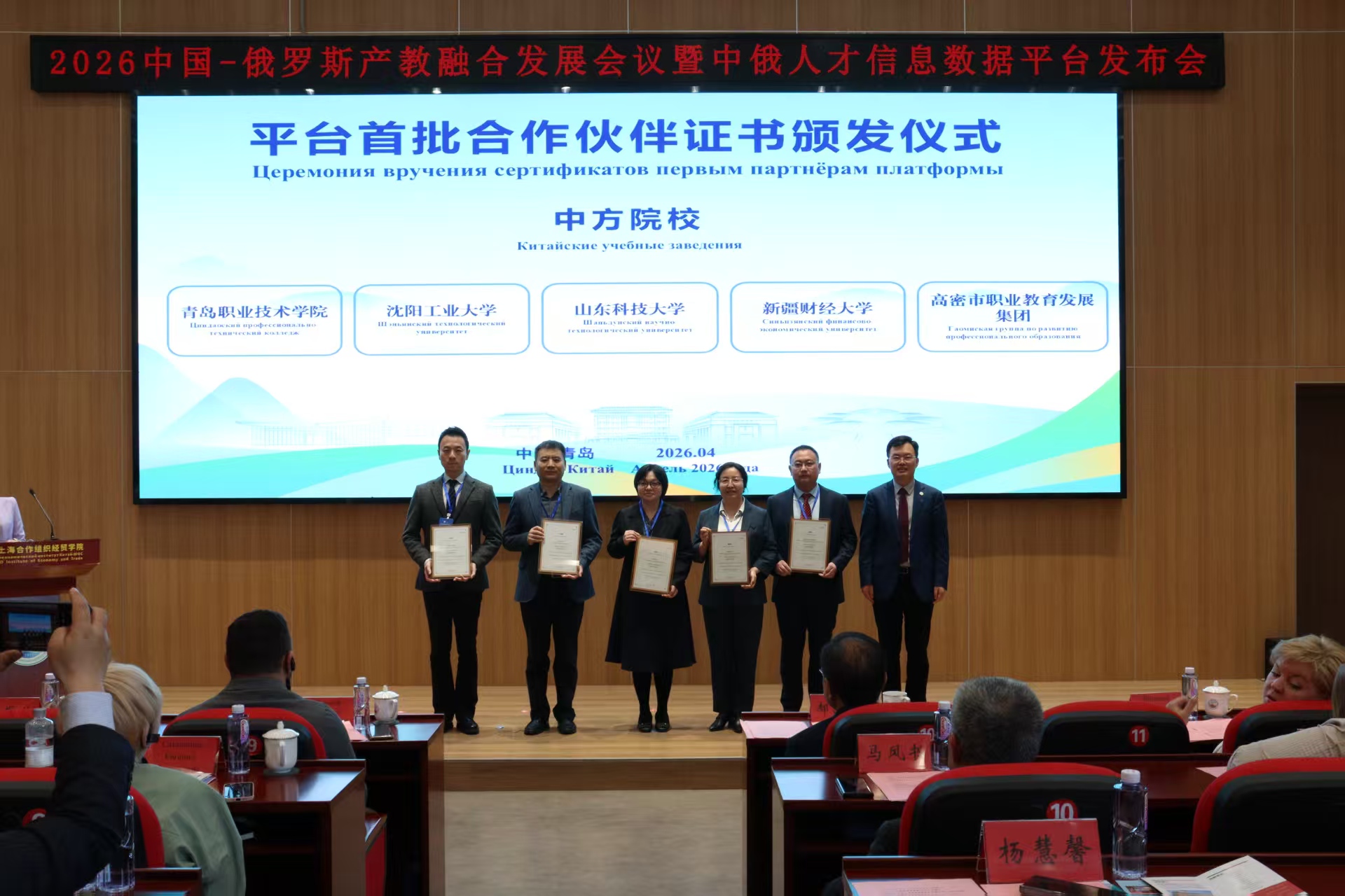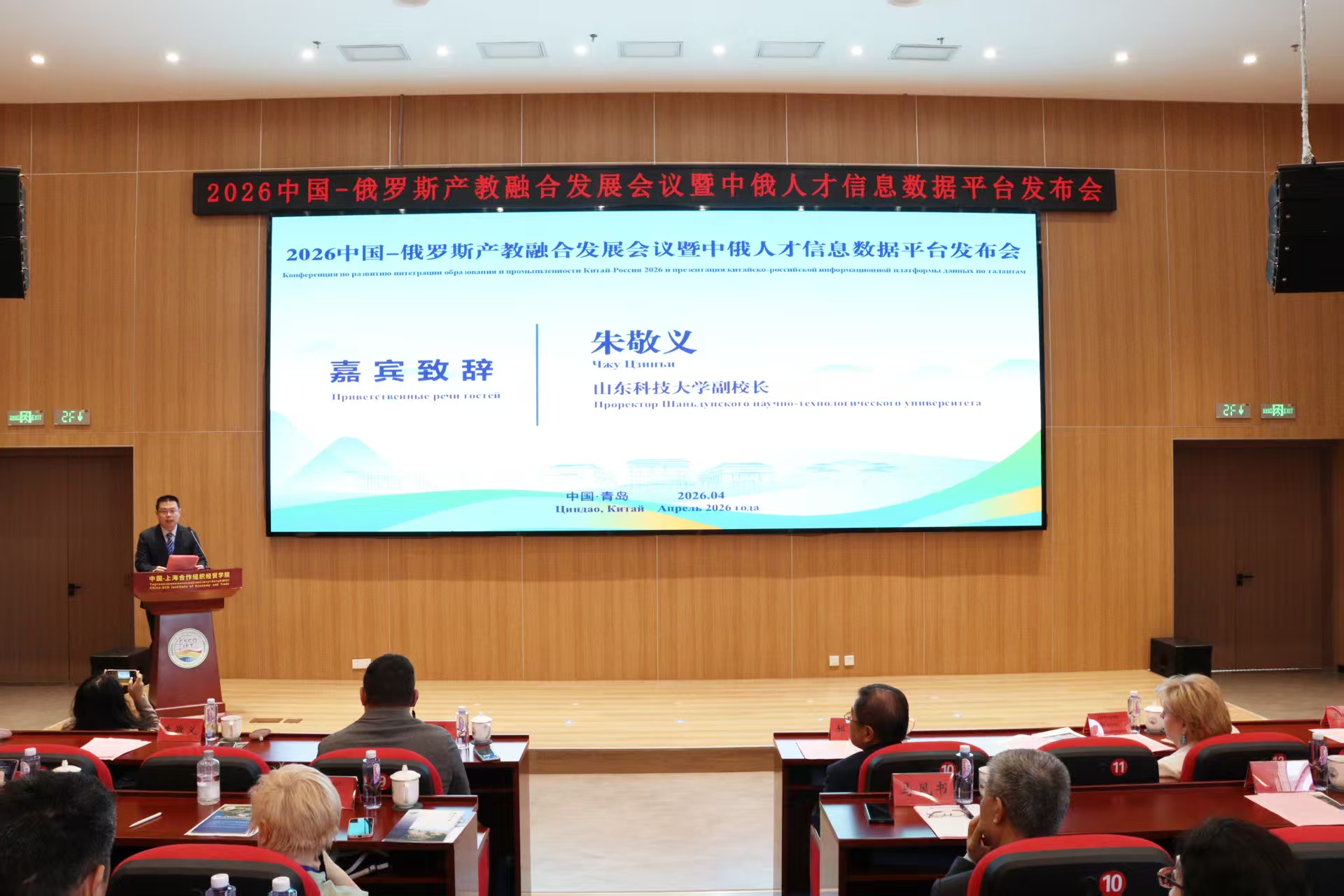 4月14日,由山东省教育厅、山东省人民政府外事办公室、上合示范区管委会指导,中国—上海合作组织经贸学院主办的2026中国-俄罗斯产教融合发展会议暨中俄人才信息数据平台发布会在青岛举行。校党委常委、副校长朱敬义受邀出席会议并致辞。