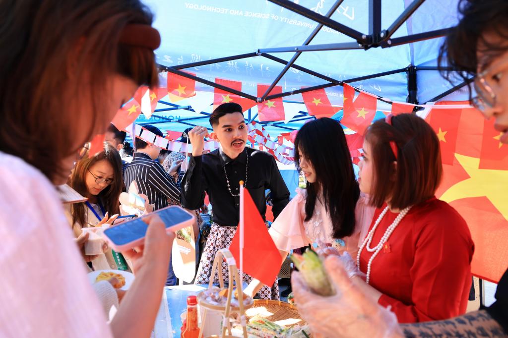 在风情游园活动中,各班级围绕不同国家文化精心设计主题展位,将各国民俗风情与特色美食融入展示。趣味竞猜、语言互动、手工创作等环节精彩纷呈,同学们在轻松愉悦的氛围中交流语言、比拼智慧,沉浸式体验外语与多元文化的独特魅力;国际交流学院设立特色美食与文化展品摊位,从异域风味小吃到多元文化手作,全方位展现了世界文化的丰富魅力。整场游园会以趣味活动为纽带、以文化交流为核心,让同学们在轻松愉悦的氛围中深化语言实践、领略多元文化魅力,充分彰显了校园开放包容、多元共融的文化氛围。