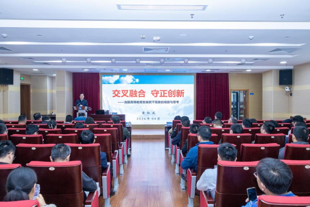 报告会上,黄红武教授从当下中国大学面临的形势与挑战出发,对新型研究型大学建设的时代内涵展开系统论述。他从AI赋能重构大学生态、交叉融合创新学科组织范式、以“产教融合、科教融汇”优化人才培养模式、借鉴相关理念完善治理机制四个方面介绍新型研究型大学的创新路径,从转型意义、核心使命、发展目标三个方面明确新型研究型大学的价值定位,对传统应用型大学构建新型二级学院的实践探索进行了分享。他提出要正确处理传统与创新、基础与应用等多重关系,推动高等教育从“象牙塔”向“社会创新引擎”转型。
