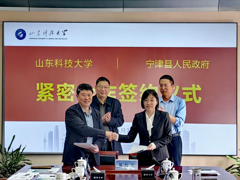 会上,合作发展处处长王晓东,宁津县经济开发区党工委书记、管委会主任,县科技和工信局党组书记、局长王冬梅代表双方签署《宁津县人民政府与山东科技大学紧密合作协议》。