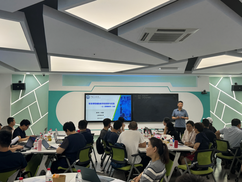 活动特邀中国石油大学(华东)理学院教师孙建国作专题分享。孙建国以《高等数学》课程为实践案例,围绕“智慧课程辅助教学的探索与实践”主题,从课程资源数字化建设、AI工具在课堂互动与课后辅导中的应用、学生学习数据的精准分析等方面,讲解了如何借助智慧技术破解传统教学痛点。他表示,技术应用始终要服务于“立德树人”根本任务,在提升教学效率的同时,更要注重对学生价值观的引导和全面发展的促进。