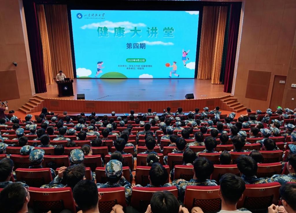 近日,学校举办第四期健康大讲堂暨新生入学教育系列报告会,以“健康防护在身边”----校园传染病防控为主题,邀请青岛西海岸新区疾病预防控制中心及青岛西海岸新区结核病防治所的专家,以专业的科学知识为2025级新生筑牢健康根基。本次报告会由学生工作处、后勤管理处联合主办,校医院承办。2025级全体新生参加此次报告会。