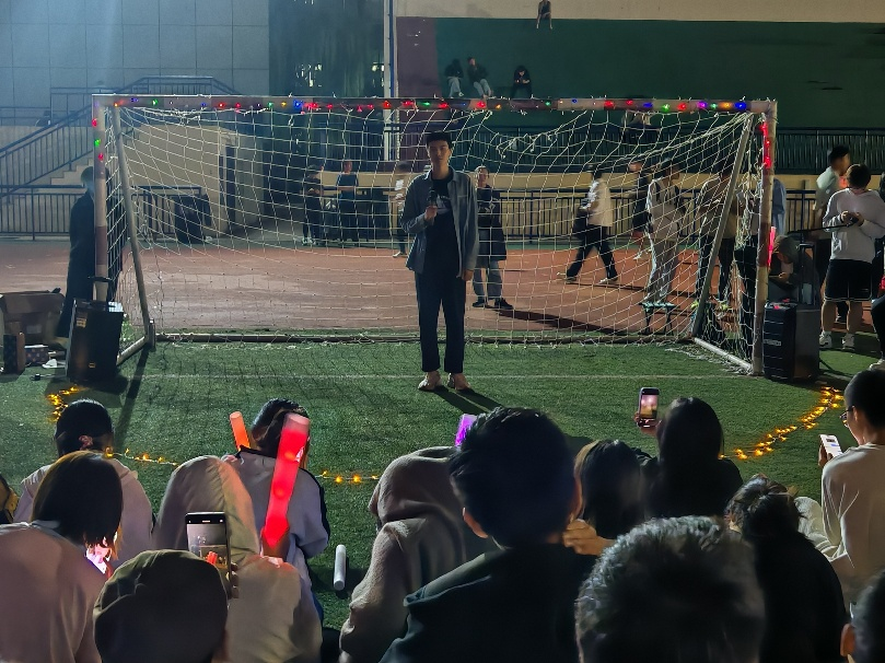 音乐节在《一点》的旋律中拉开序幕。《向阳而生》以充满力量的节奏,传递出能源学子面向未来、无惧挑战的勇气;一曲《老男孩》唤起对青春岁月的怀念,激发新生珍惜当下、奋发作为的责任感;《落叶归根》深沉的嗓音则隐喻能源人扎根行业、奉献祖国的厚重情怀。中场游戏环节,马凌骥老师与新生热情互动,将现场气氛推向高潮。《花海》的甜美歌声带领观众漫步春日花园,《SOLD OUT》的激昂旋律迸发出青春的蓬勃力量。《ALWAYS ONLINE》的温情、《我知道》的细腻、《戒烟》的深情、《无名的人》的励志、《彩虹》的治愈,五首风格各异的歌曲接连上演,或温情脉脉打动人心,或励志昂扬鼓舞士气,每一首都赢得新生们的热烈掌声与欢呼。(通讯员:刘瀚晖 摄影:陈佳宝 实习编辑:李曼怡)