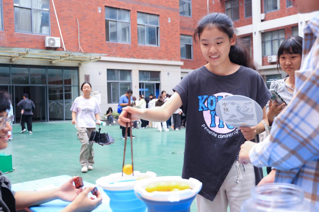 本次游园活动设置多项传统文化体验环节,将中秋文化元素与互动游戏巧妙融合。在“拓扇映月”活动中,同学们用空白团扇结合传统拓印工艺,亲手制作属于自己的中秋主题团扇,体验传统手工艺的魅力。“玉兔投月”环节将投掷趣味游戏与中秋主题相结合,让同学们在轻松愉快的氛围中了解传统文化。“海底捞月”挑战赛则注重团队协作,要求参赛者用长筷将象征圆月的乒乓球从水池中夹出,既提升了传统文化趣味性,又锻炼了同学们的协作能力。而“家书寄秋”环节鼓励学生提笔抒怀,以传统书信形式传递对亲人的思念之情。活动现场气氛热烈,同学们在动手创作和友好互动中,不仅感受到中秋佳节团圆温馨的氛围,更深刻体会到中华优秀传统文化的魅力。(通讯员:韩冰 张君义 实习编辑:李曼怡)