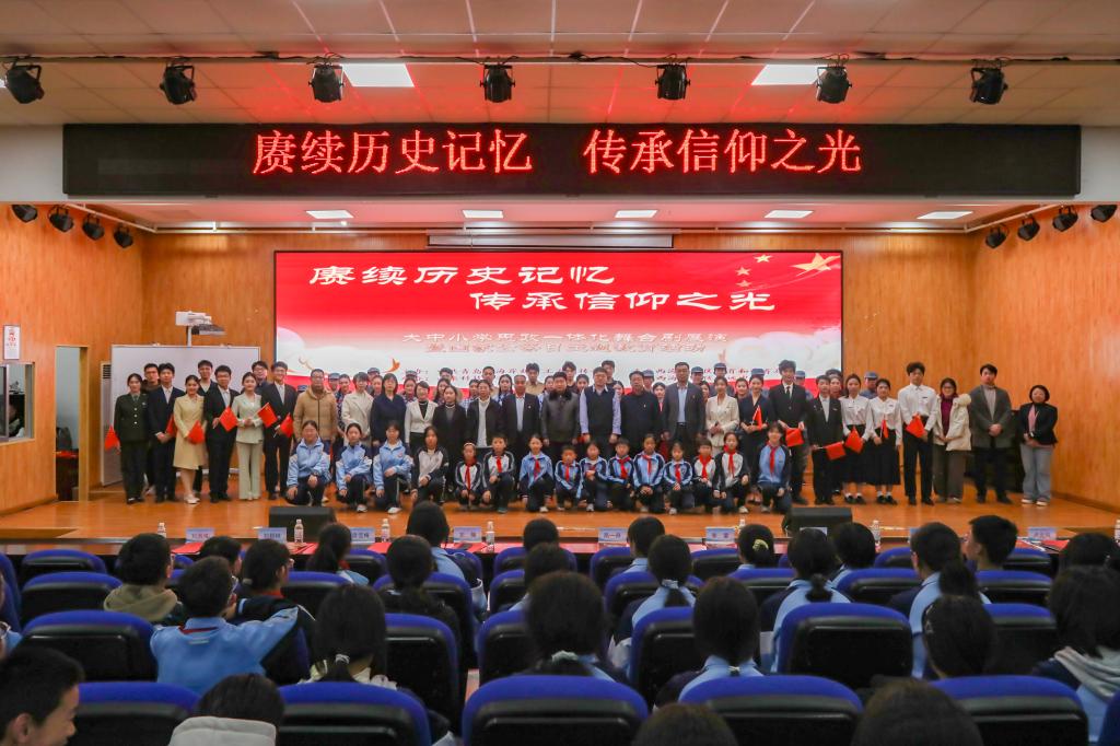 12月9日,由中共青岛西海岸新区工委宣传部、青岛西海岸新区教育和体育局主办的“赓续历史记忆 传承信仰之光”大中小学思政一体化舞台剧展演暨国家公祭日主题教育活动在青岛西海岸新区致远中学举办。山东科技大学受邀为新区致远中学、第二高级中学、下庄小学等中小学师生代表共500余人,呈现了一场“弘扬伟大抗战精神”思政舞台剧。