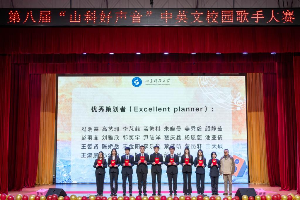 近日,由济南校区学团工作部主办、济南校区学生会承办的第八届“山科好声音”中英文校园歌手大赛决赛在艺体楼举行。济南校区主任郭加书,校区党委委员毛庆东、刘西奎,相关部门负责人、学团工作干部、部分外籍教师和学生共同观看比赛。活动还特邀山东第一医科大学、齐鲁工业大学、山东中医药大学、山东财经大学、济南大学等驻济兄弟高校学生会主席团成员参加。