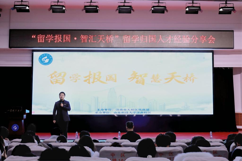 近日,“留学报国 智汇天桥”留学归国人才经验分享会在济南校区图书馆报告厅举行。天桥区委统战部分管日常工作的副部长李敏杰、组织部副部长王群带队参加活动。