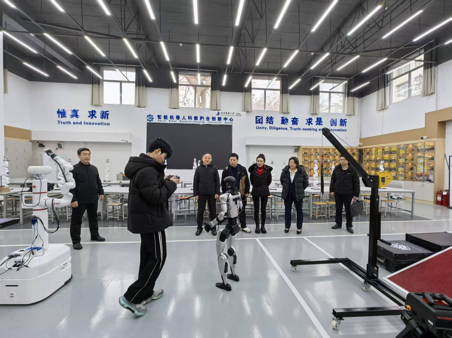 济南校区党委委员兼党政办公室主任孙国强、相关部门负责人接待宣讲团一行并座谈。与会人员围绕国际化办学、人才培养、就业实践等开展交流,参观了济南校区留学报国教育长廊、智能机器人科教融合创新中心,深入了解济南校区“留学报国”思政工作特色和科技创新工作成果。