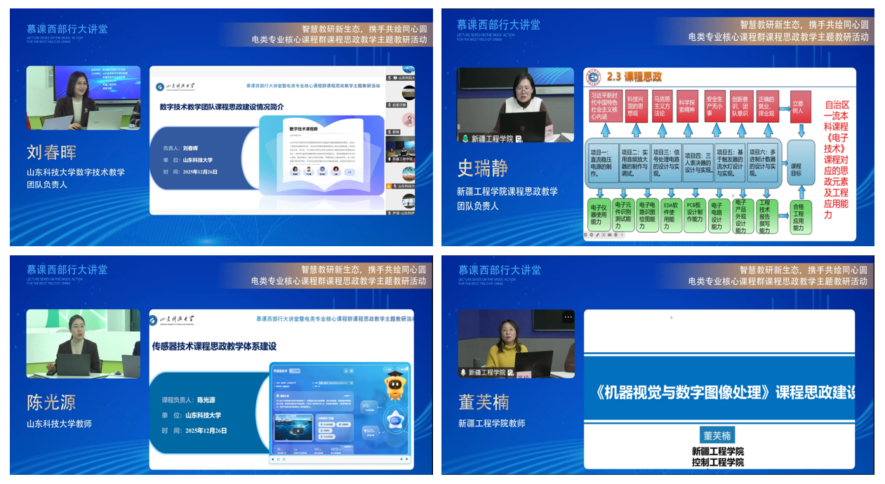 近日,在慕课教学西部行工作组指导下,山东科技大学数字技术教学团队和新疆工程学院课程思政教学团队联合开展“智慧教研新生态 携手共绘同心圆”东西部高校电类专业核心课程群课程思政教学主题教研活动。