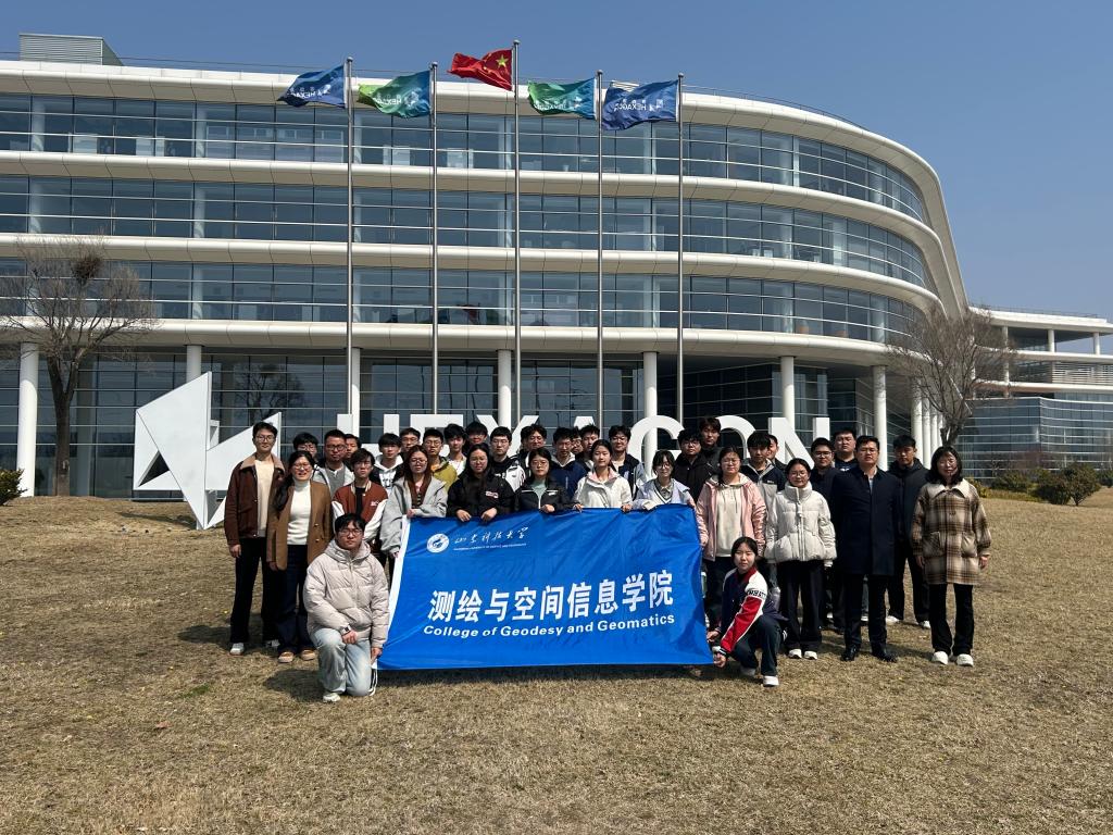 近日,2026年全球测量师日青岛主场活动在青岛海克斯康红岛智慧产业园举办。山东科技大学测绘学院院长涂锐、副院长徐莹,测绘系主任李艳艳及优选辅导员张颖带队,测绘工程专业33名学子参加活动。