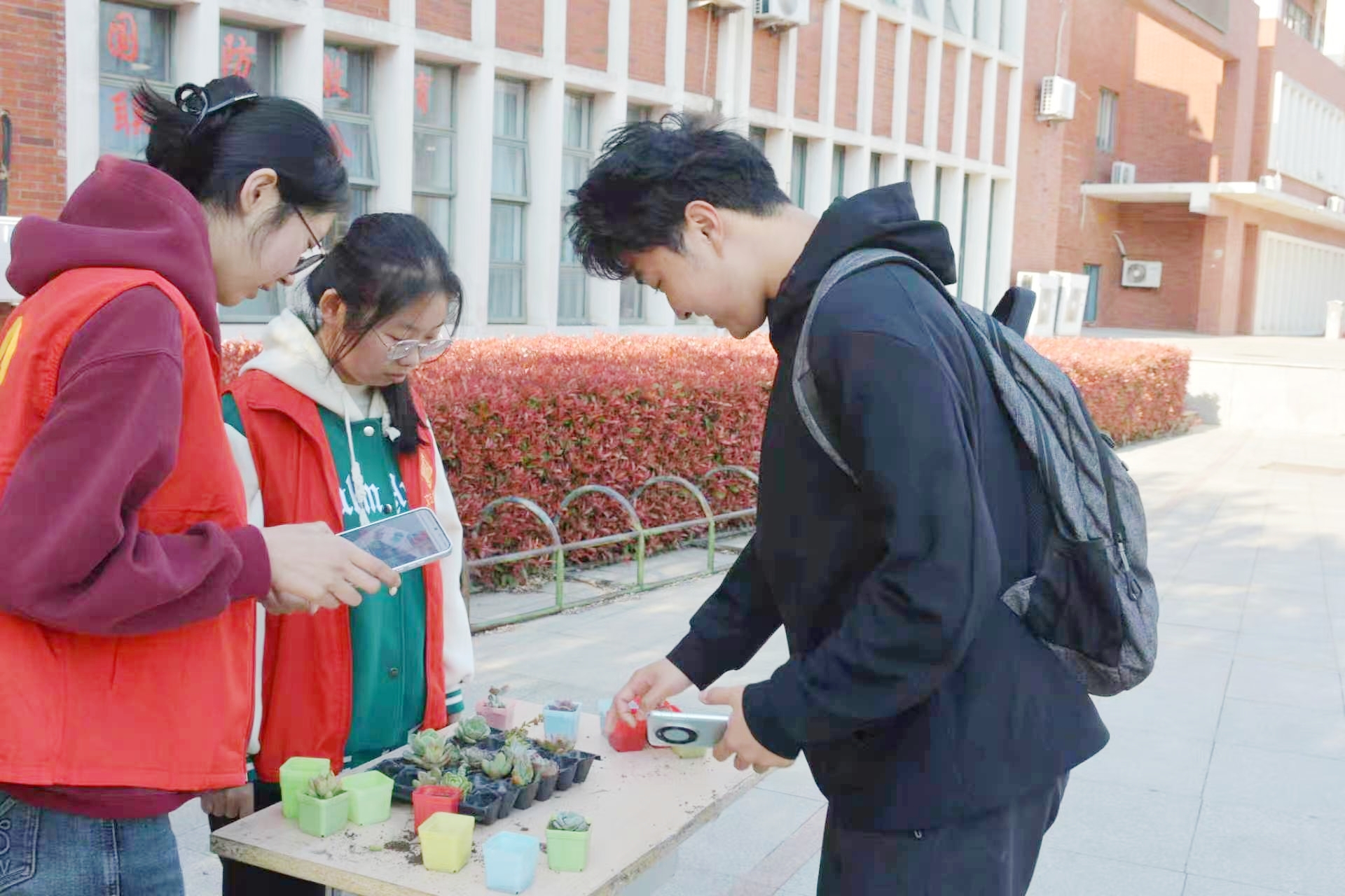 竞答题目设置涵盖生态文明政策解读、低碳生活实用常识、资源循环利用有效方法等多个领域。活动设置奖励机制:凡参与竞答的同学可获赠一盆多肉植物。在互动环节中,同学们结合日常生活实际,围绕校园垃圾分类、节水节电、减少一次性用品使用等话题展开交流。(通讯员:房家琪 暴梦琪 实习编辑:卢烨然)