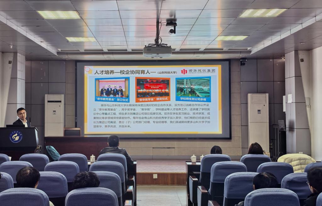 毕业生辅导员张方源对到场的荣华建设集团表示欢迎和感谢,鼓励到场的同学们把握机会、认真聆听、踊跃互动,在交流中有所收获,实现与心仪企业的“双向奔赴”。
