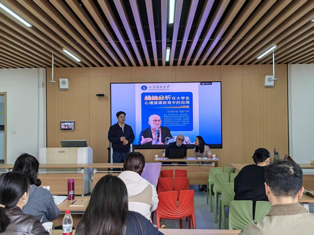 工作坊中,Varvin以典型临床案例为引入,结合自身数十年深耕精神分析领域的研究成果与实践经验,阐释了精神分析核心理论在青少年创伤干预中的应用逻辑。他表示,青少年创伤事件的心理修复并非孤立的干预过程,主要抚养人和教师作为与学生接触最为密切的群体,其给予的接纳、包容与理解,是帮助学生走出创伤阴霾、重建心理安全感的重要支撑;而真诚、倾听、共情等基础心理咨询技巧,更是打通学生心理壁垒、提升学生工作实效性的有效抓手。Varvin的讲解为在场人员搭建起理论与实践衔接的桥梁,深化了大家对心理健康教育工作内涵的认知。