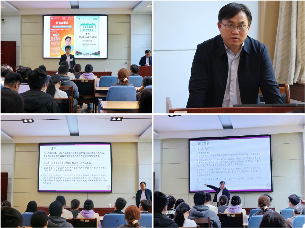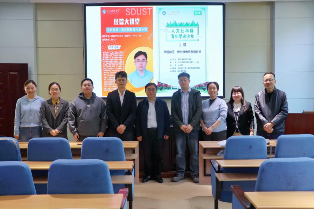 近日,经管学院在教学楼317会议室举办经管大讲堂活动,邀南开大学严兵教授担任主讲嘉宾,围绕“关税加征、供应链传导与稳外资”为学院师生作学术报告。讲座由经管学院副院长刘露主持,学院60余名教师及研究生代表参加。