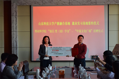 近日,材料学院举行产教融合基地、就业实习基地签约仪式暨“强信奖(助)学金”、中厦文化广场捐赠仪式。