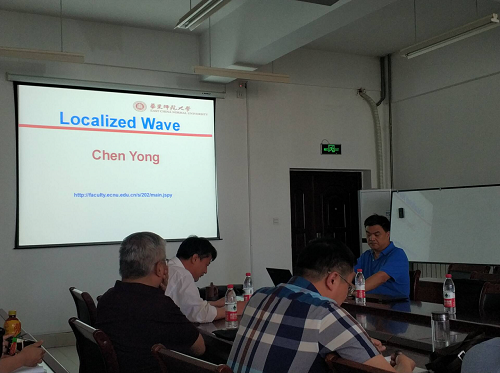 报告主题为“Localized Waves”,报告主要阐述局域波的发展历史与目前主要的研究进展。陈勇介绍了从达布变换、KP推导、双线性方法和非局域对称四个方面构造局域波等内容。最后,陈勇和与会师生就相关内容进行了更加深入的交流和探讨。