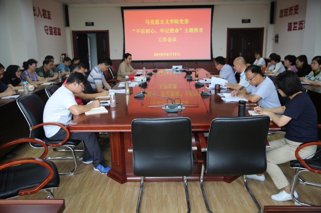 9月17日,马克思主义学院党委召开“不忘初心、牢记使命”主题教育工作会议。会议由院党委书记郭加书主持,院长逄奉辉、副院长邵勇、院长助理常春及全体党员教师参加会议。