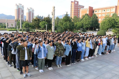 9月16日,文法学院在泰山广场举行升旗仪式,2019级全体新生参加。