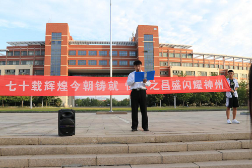 清晨,同学们准时在泰山广场站队集合,等待升旗仪式的开始。六点半,鲜艳的五星红旗伴着庄严的国歌,在旭日光辉中徐徐上升,全体同学庄重地行注目礼。2018级汉语言1班刘佳琪同学发表主题为庆祝新中国成立七十周年华诞的演讲。他提到,建国70年来,中国已昂首步入新时代,无论是经济的突飞猛进、外交的独具一格还是科技的日新月异,都见证着中国的崛起。作为新时代青年,更要牢记历史,锐意进取,用自己最充沛的活力与热情,为祖国发展贡献力量。最后,刘佳琪带领2019级全体新生重温团员誓词,表达为共产主义事业而奋斗的决心。(通讯员:董宇涵 实习编辑:李睿智)