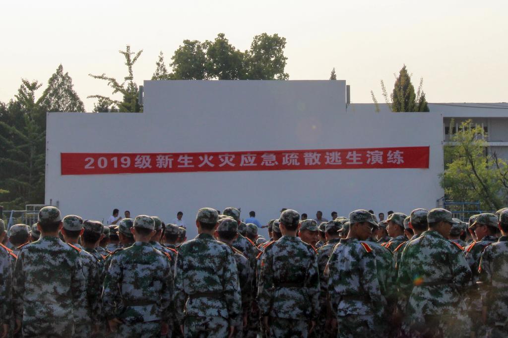 本次演练以1、2、3、4、5号学生公寓和1号教学楼为逃生演习点。整个演练从发起“火灾”信号到集合完毕用时不到4分钟。