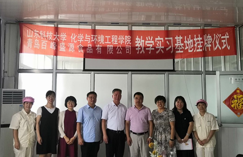 8月26日,化工学院教学实习基地揭牌仪式在青岛百峰盛源食品有限公司举行,化工学院院长吕宪俊、青岛百峰盛源食品有限公司董事长安佰峰,化工学院副院长王鹏等出席揭牌仪式动。青岛百峰盛源食品有限公司销售部经理刘建玮主持。