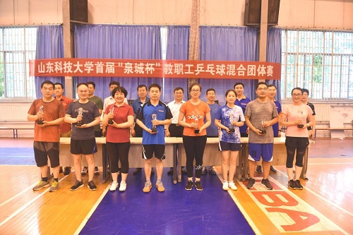 7月6日,学校首届“泉城杯”教职工乒乓球混合团体赛在校体育训练馆落下帷幕。校党委常委、副校长高建广,校工会主席刘培进出席闭幕式并为获奖运动员颁奖。 本次比赛共有来自21个分工会的252名运动员参加比赛。经过57场激烈争夺,化工学院代表队荣膺首届“泉城杯”教职工乒乓球混合团体赛冠军,计算机学院、机关二工会代表队荣获亚军和季军。矿业学院、测绘学院、文法学院、体育学院、自动化学院代表队分列第四到八名。(工会供稿 实习编辑:李睿智)