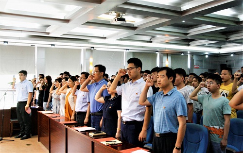 7月1日,机电学院举办新党员入党宣誓暨老党员重温入党誓词大会。机电学院常务副院长韩宝坤、党委副书记苏超,全体专兼职辅导以及全体学生党员参加此次入党宣誓大会,部分入党积极分子观摩会议。会议由团委书记靳凯主持。