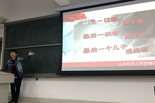 近日,机电学院梦耀中华服务宣讲团开展“沂蒙精神进校园”爱国主义宣讲活动。 宣讲活动共持续两周,对象囊括机电学院2018级6个专业21个班共660余名同学。