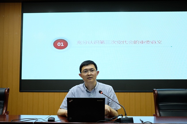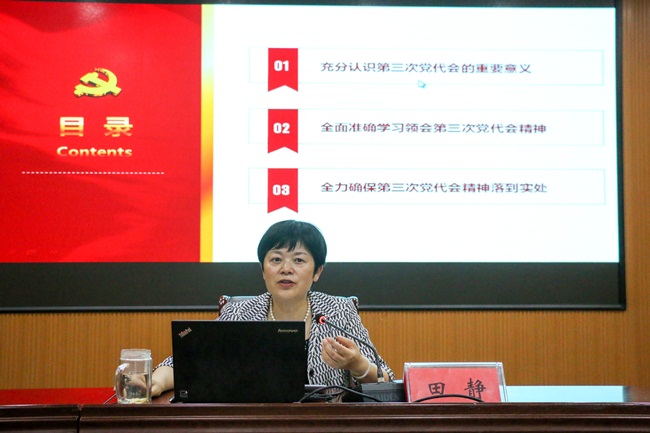 田静、汪国庆结合我国社会经济和高等教育发展的背景以及我校的校史校情,着重介绍了学校学院改革发展取得的突出成就、当前面临的历史机遇和严峻挑战,重点突出了党代会制定的“一二三八十”的目标任务,让全体学生全面了解、准确把握学校第三次党代会的主要内容和精神实质,教育引导学生以良好的精神面貌,以积极进取的学习态度,自觉融入学校学院事业发展大局。(通讯员:易翰霖 张佳琪 实习编辑:毕泗兴)