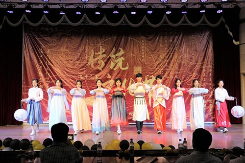 晚会传统韵味浓厚,现场座无虚席,传统艺术表演形式相声、民族器乐演奏、古典舞、歌曲等节目轮番上演。乐器演奏《四季折之羽》宛转悠扬,古典韵味十足;歌曲《刀剑如梦》豪情万丈,一股江湖豪气扑面而来;舞蹈《秦淮五艳》、《清平调》以优美的舞姿描摹出一幅幅绝美的画卷,让人仿佛置身仙境……晚会节目精彩纷呈、高潮迭起,充分展现了中华民族博大精深,源远流长的文化,台下的观众深深陶醉于本场传统文化演出中。晚会中间还穿插游戏“正话反说”游戏,观众踊跃参与,台上台下积极互动,现场气氛轻松愉悦。(通讯员:尹浩然 董宇涵 实习编辑:李睿智)