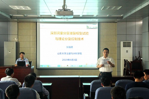 6月3日,土建学院邀请到泰山学者特聘专家、教育部新世纪优秀人才支持计划获得者、山东大学土建与水利学院副院长张强勇为土建学院师生作报告,土建学院副院长张宪堂主持本期名家讲坛。本次报告以“深部洞室分区破裂模型试验与理论分析及控制技术”为题,从深部洞室分区破裂模型及工程应用等方面展开讲解。